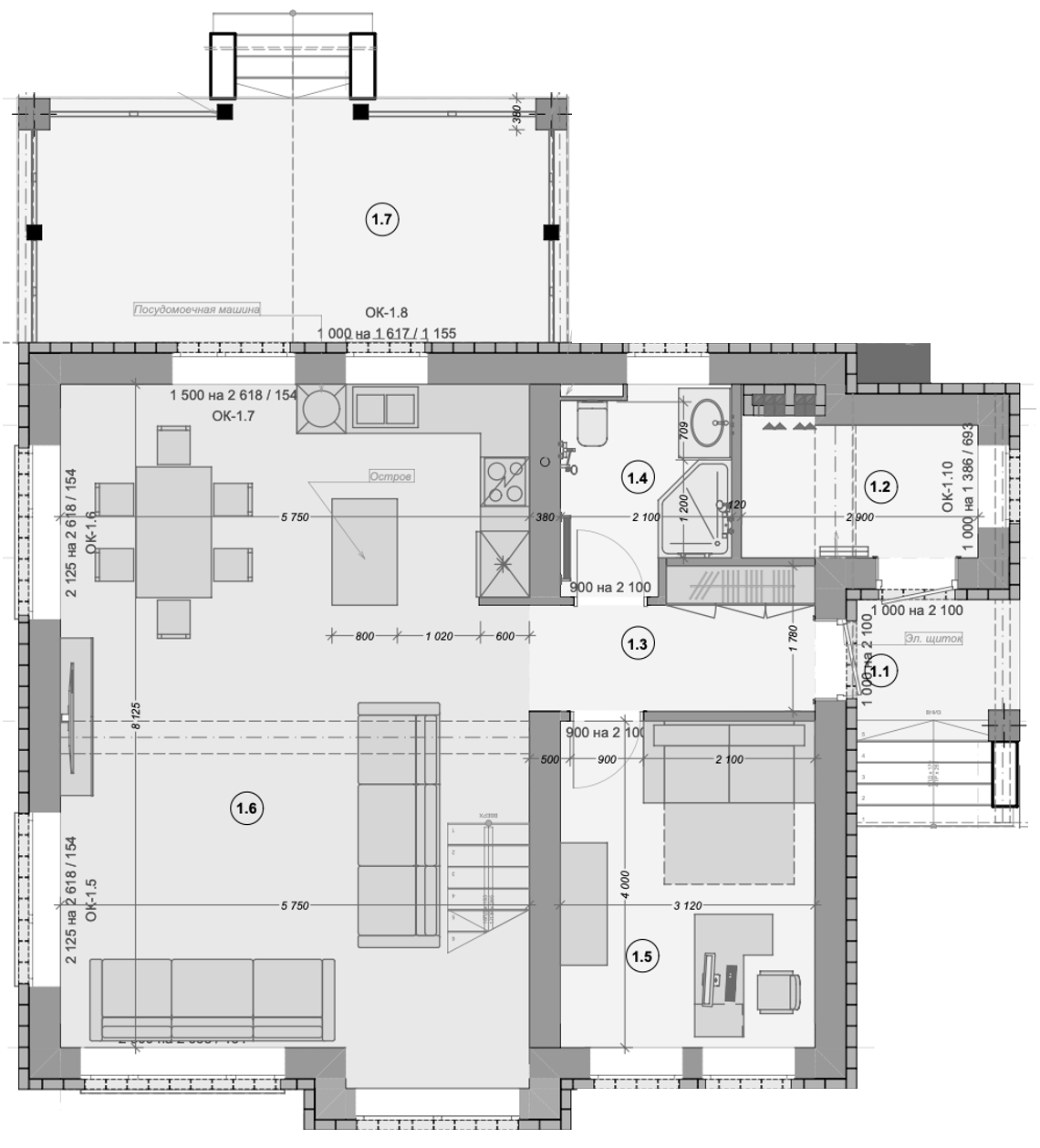 • Первый этаж – монолитное перекрытие (возможно исполнение с плитами перекрытия)
