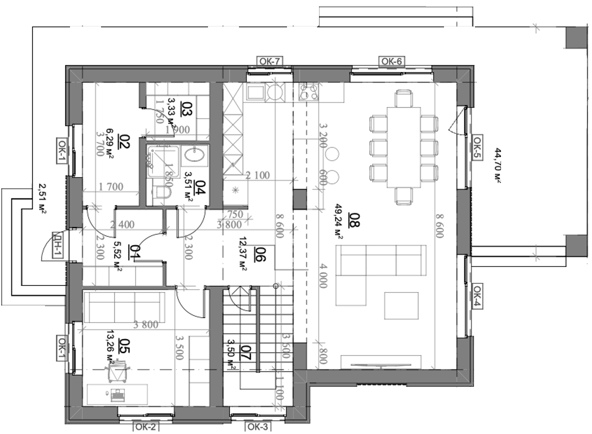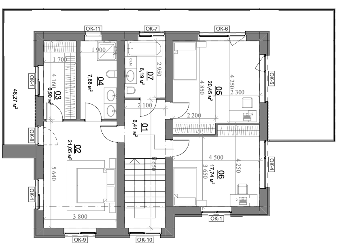 •Стены — газобетонный блок 400мм (возможно изменение кладочного плана на керамический блок или дополнительное утепление стен)